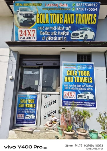 Vehicle Types: They have a variety of vehicles available, including sedans (like Dzire, Etios), SUVs (like Ertiga, Innova), and Tempo Travellers for larger groups Gola Tour And Travels Kashipur Uttarakhand 244713 mr Lekhraj Gola 9720175554